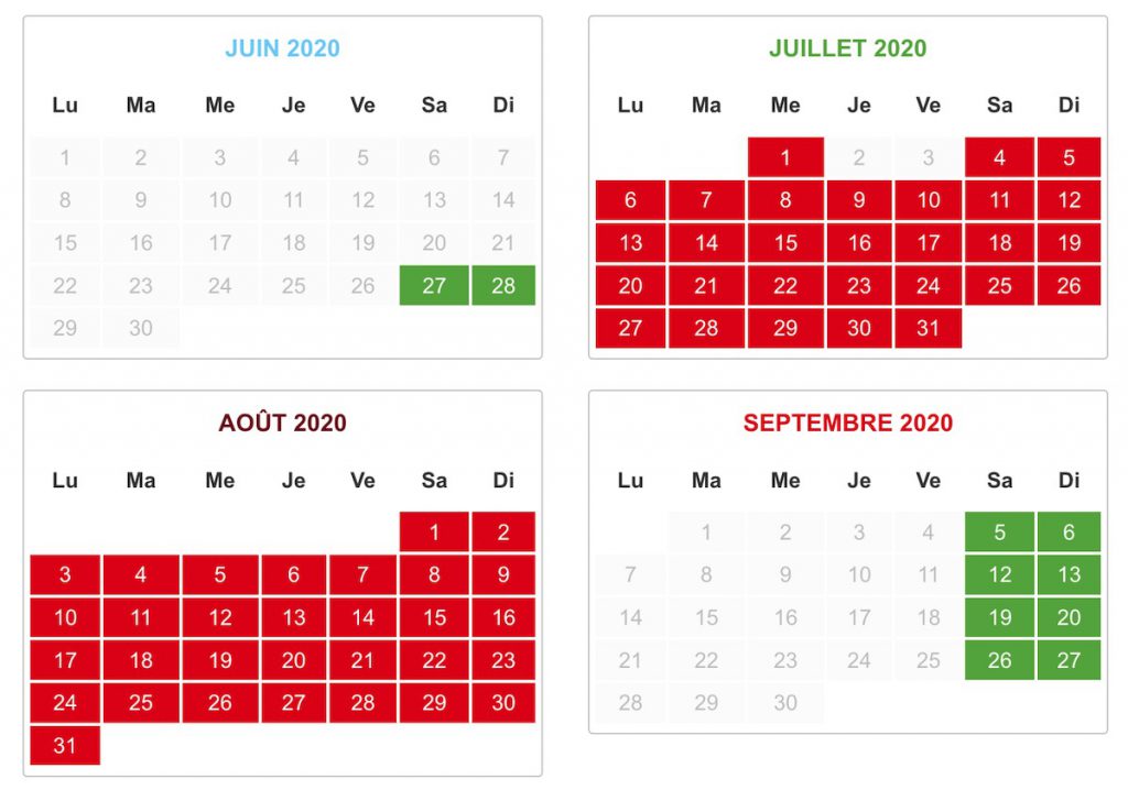 - En juillet et aout : ouverture tous les jours (haute saison)